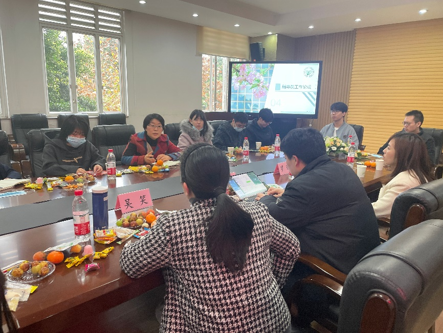 第三环节,由吴笑老师作有关辅导员工作室建设的工作交流。吴笑老师从工作场地,工作室架构,工作室工作推进思路,实施团队以及学生团队管理等方面为到场老师和同学详细介绍了辅导员工作室的工作内容,展示了辅导员工作室科学完整的运行体系,并阐明了辅导员工作室的工作目标与实际意义。最后,与会老师和同学们进行了热烈地交流讨论,活动圆满完成。