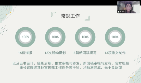 团委学生会23-24学年秋季学期学生干部述职评议于线上顺利举行。本次述职评议大会旨在让团委学生会干部对23-24学年秋季学期期间工作的情况、心得体会、存在的问题进行总结汇报和反思,并为新学期更好地开展新的工作做好准备。