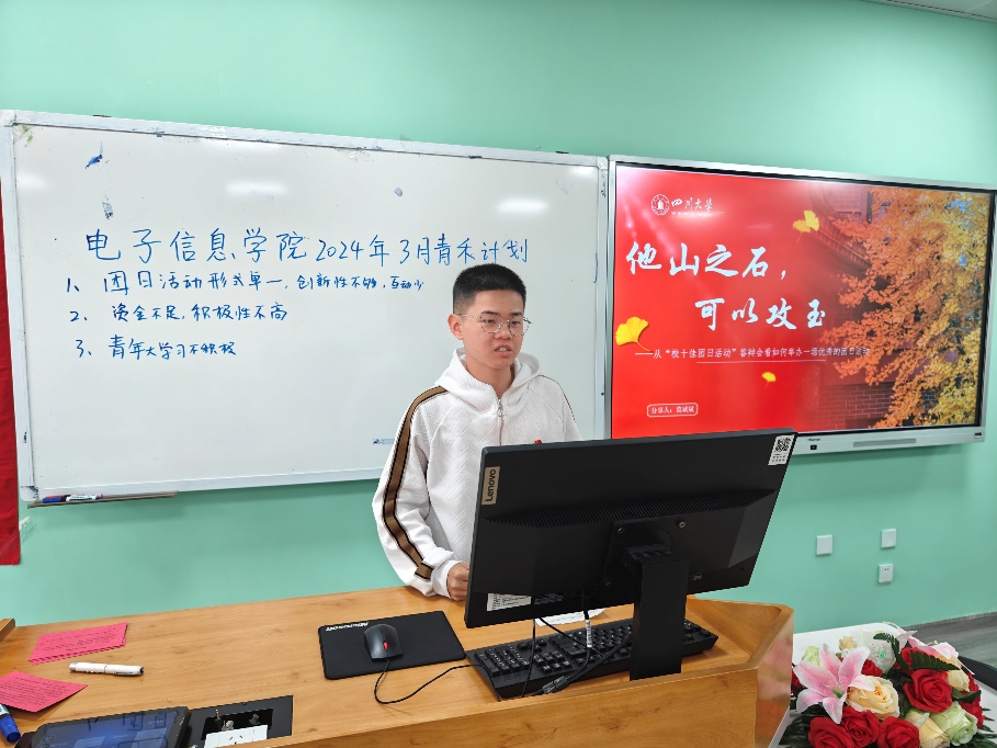 2024年3月24日上午10时,院团委组织部于江安校区综合楼B104教室举行三月青禾计划活动。本次活动旨在提高团干部思想理论水平和政治素质,培养团支书的时代责任感和担当精神,发挥团支书的标杆和引领作用本科2023级团支书参会。