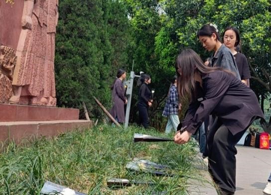 江安校区烈士碑前进行了一系列祭奠活动,表达对先烈的崇高敬意,传承红色基因。