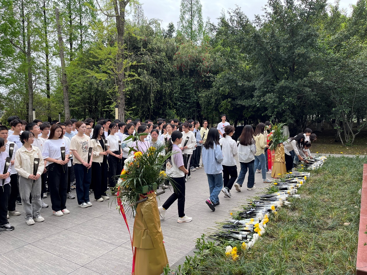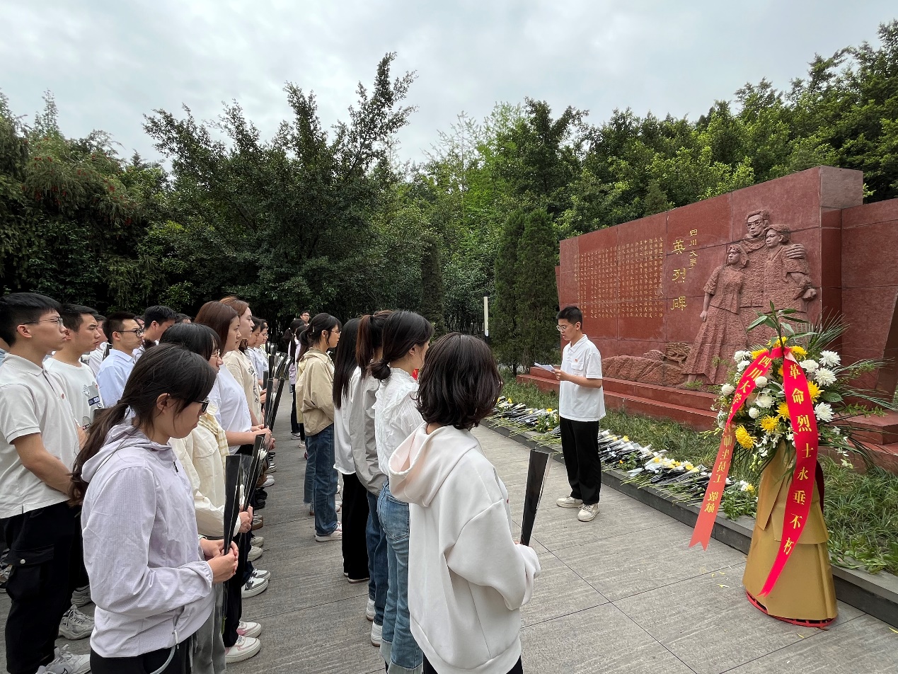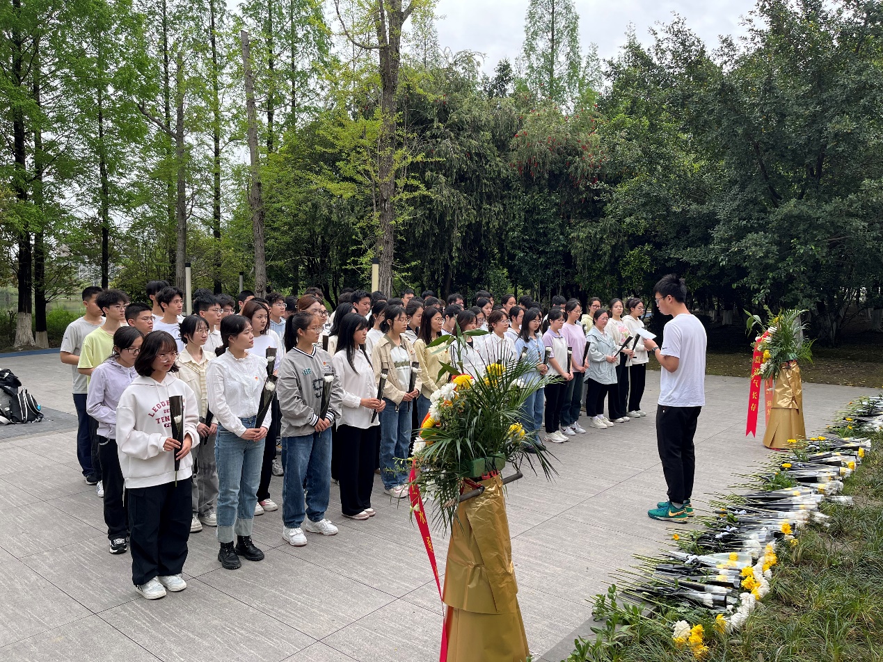 本科2023级在江安校区英烈碑举行清明祭英烈主题活动,年级长叶果同学主持,辅导员申鑫、兼辅秦小涵和部分学生代表参加。