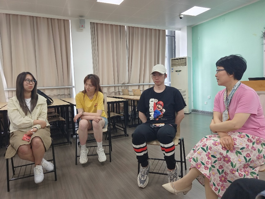 最后一项活动,何惠老师指定一位同学作为“演员”,在连续三分钟的时间内不停说话,内容不限;其余人在倾听的过程中要观察“演员”的动作神态,感受自己的想法以及情绪。三分钟过后,大家从不同的角度观察到了很多不一样的东西,虽然“演员”说的话与大家并无联系,但每个人都意外地收获了很多感悟,也进一步理解了自己的内心。
