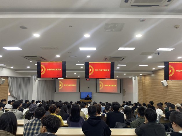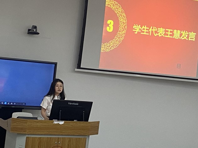 2022级研究生王慧作为本次培训班的学员代表发言。她表达了向党组织靠拢的坚定决心,并表示大家在培训中要强化政治理论学习,提高思想道德水平,增强专业能力和本领,朝着一名合格共产党员标准努力。