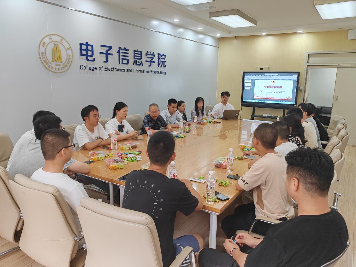 基础教学楼A-110b会议室组织开展了21级研究生毕业党员最后一堂党课。出席人员有学院党委副书记廖勇明书记和张帆老师,以及21级毕业生党员代表。