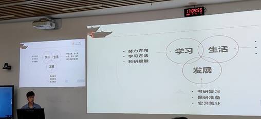 首先,由新的兼职辅导员谢秉坤老师做自我介绍,在未来的工作中能够为同学们解答学习、生活和发展规划上的问题,。