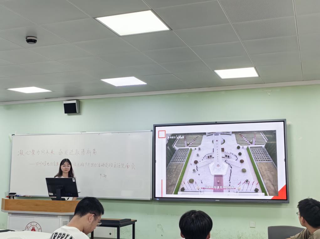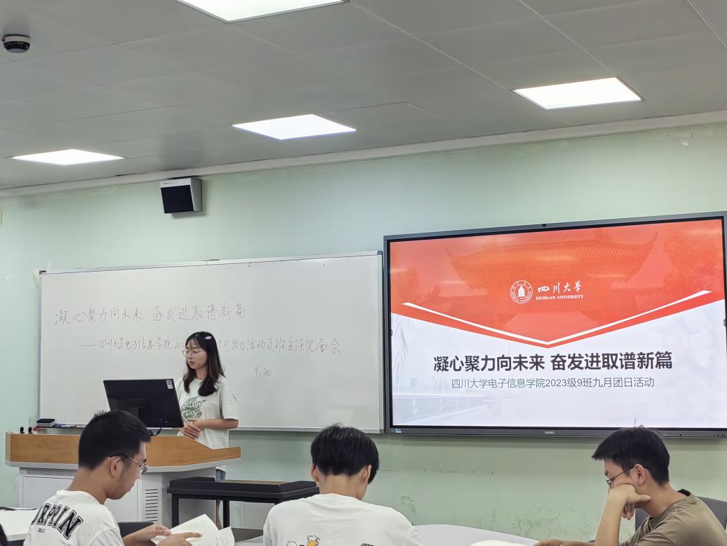 江安校区一教D座D102举行了以“凝心聚力向未来,奋发进取谱新篇”为主题的团日活动。本次活动由9班团支书谭晶晶同学主持。