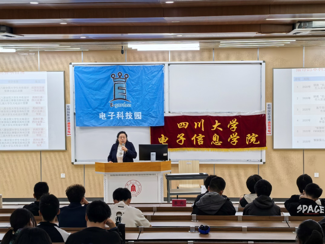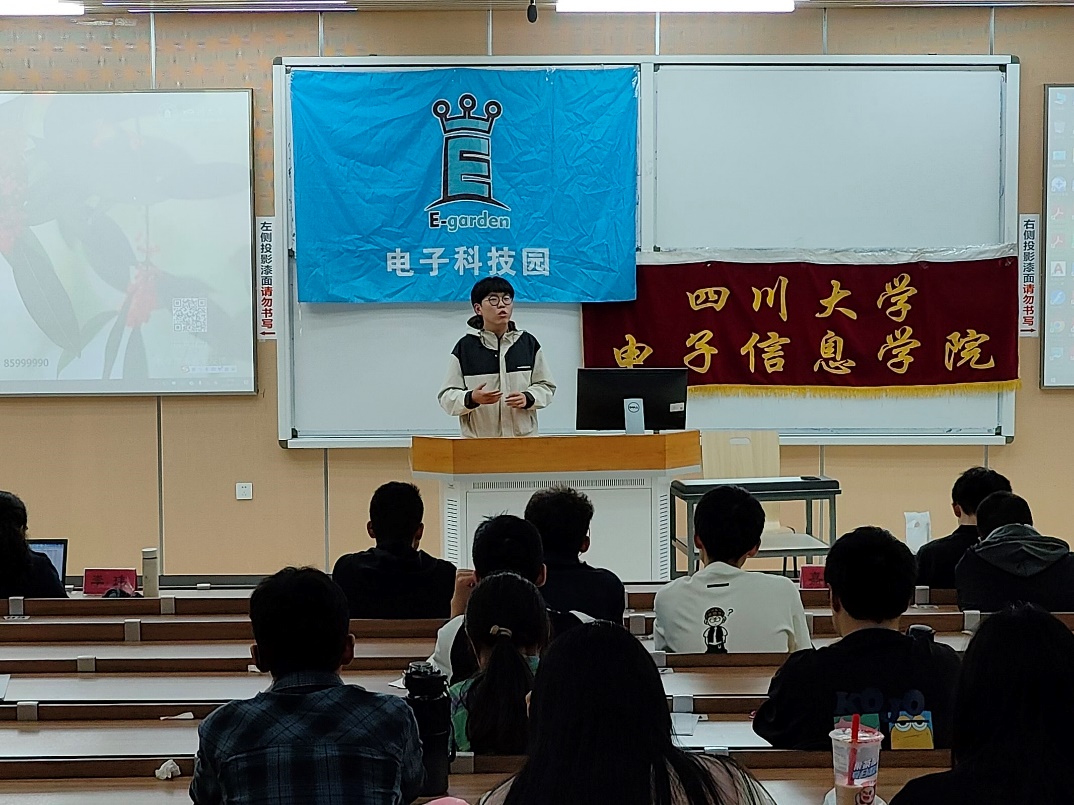 宣讲会伊始,李玮老师对来到宣讲会的同学们表示热烈欢迎,向同学们耐心讲解概念产品设计大赛相关细节,分享指导过往本科生光电设计竞赛和创新训练计划项目清单,并强调了创意的重要性。随后,李玮老师针对第六届获奖作品思路和设计方向的由来和创意进行剖析,着重分析了第十届全国光电设计竞赛国赛获奖作品,带领同学们领略想象与科技结合的奇妙世界。发言最后,李玮老师简练地总结比赛主要内容:强调主题筛选,需要有创意新意,并鼓励从踏实市场调研,文献资料调研,论证方案分析可行性,产品细节设计,产品成型及改进等方面进行探索。然后由李代强和曹祖铭两位学长分享比赛经验。李代强学长认为大赛能锻炼同学们的综合能力,通过一个互联网+的项目,结合具体案例进行分析,提示同学们选题应关注政策支持方向,克服行业痛点和技术痛点,并且具有可行性,将自己爱好与所学知识有机结合到一起,充分发挥团队精神。紧接着,曹祖铭学长从确定产品、产品功能、查找相关技术、难点及可行性分析、产品呈现的五个维度分享比赛心得,随之还推荐多个便利实用的技术软件。之后,主持人介绍相关赛程与报名要求。随着宣讲会进入尾声,大会来到自由问答环节,由老师及学长们为同学们悉心解答。