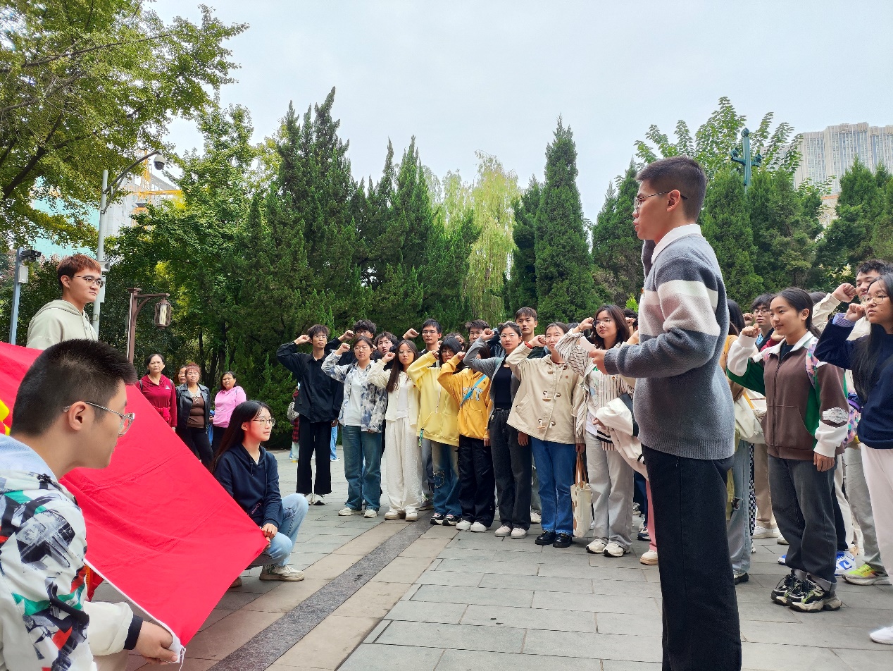 为响应2024年政府工作报告指出的“加快发展新质生产力”,引导新青年向新而行,10月25日上午,10月24日上午,由院团委联合江安本科党支部的“以新促质,卓越发展”主题实践活动第八站前往成都市人民公园,本科2023级7班、9班团支部参与,本次实践活动由院团委副书记、江安本科党支部书记申鑫带队,支部部分入党积极分子、团推优学生代表参加。