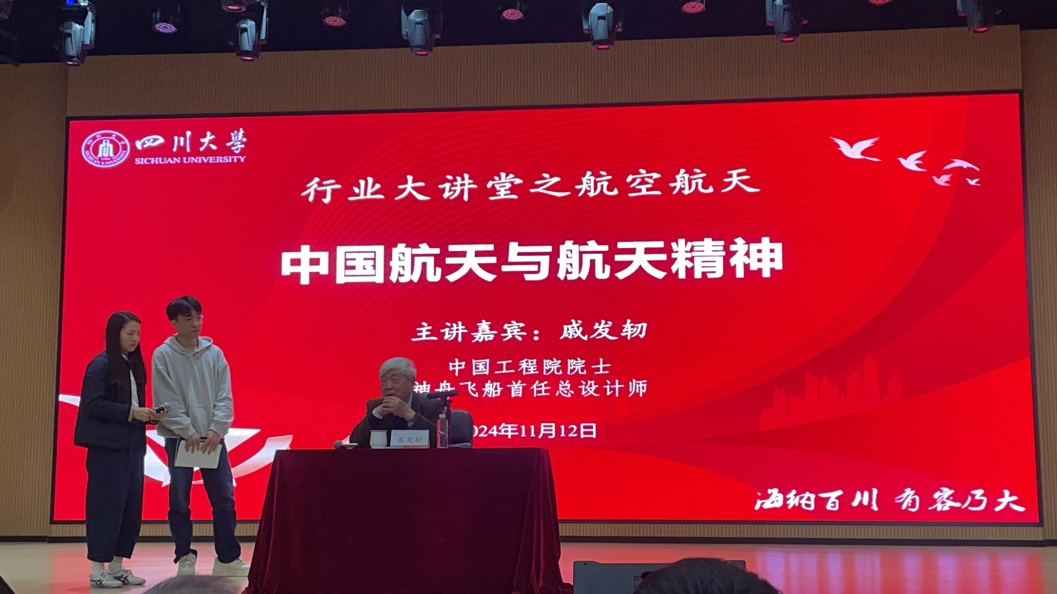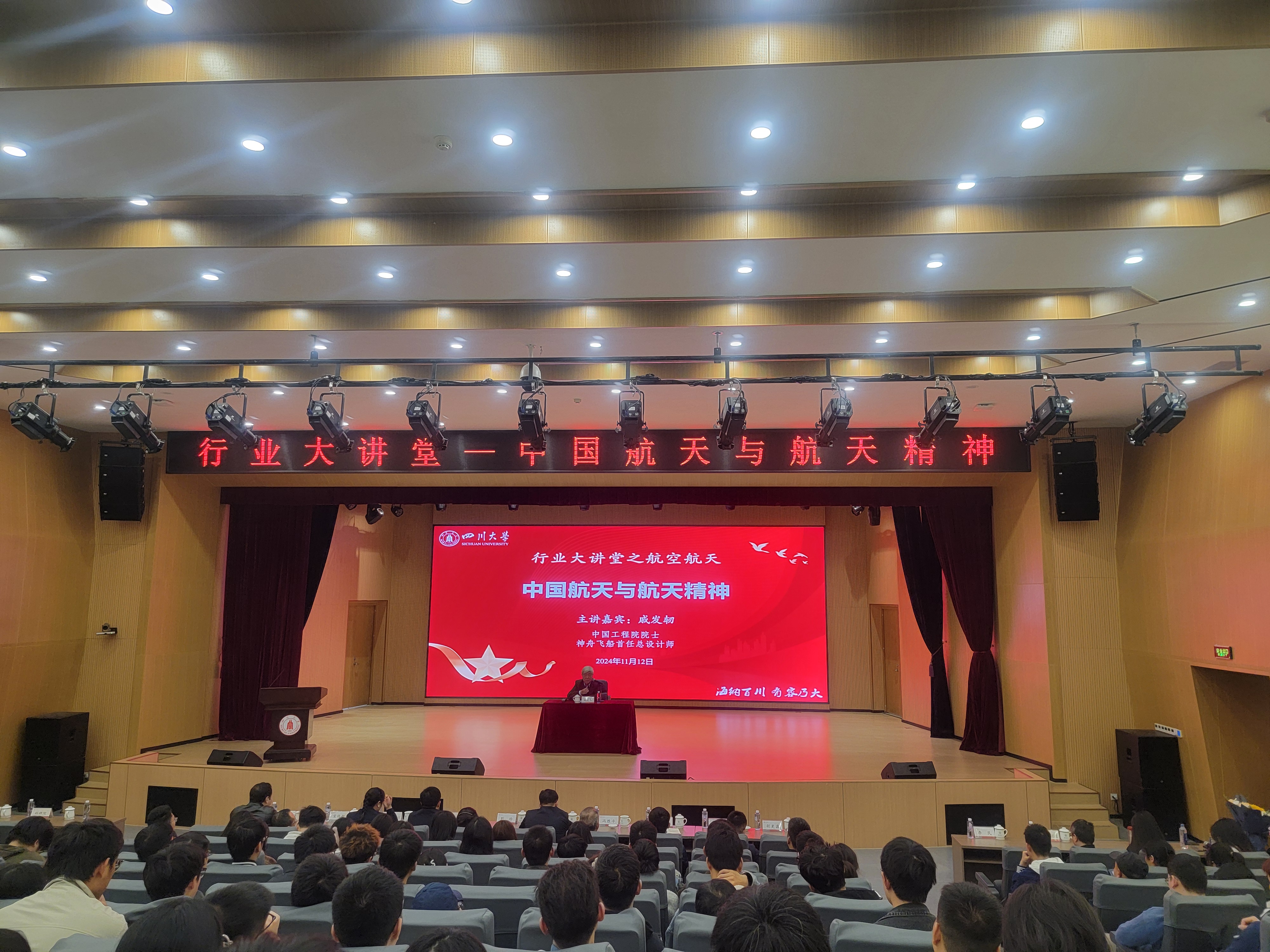 11月12日下午,我校行业大讲堂之航空航天“中国航天与航天精神”讲座在文华活动中心举行。本次讲座的主讲人是中国工程院院士、神舟飞船首任总设计师戚发韧,吸引了来自不同学院、不同年级的本科生和研究生们的积极参与。a漫