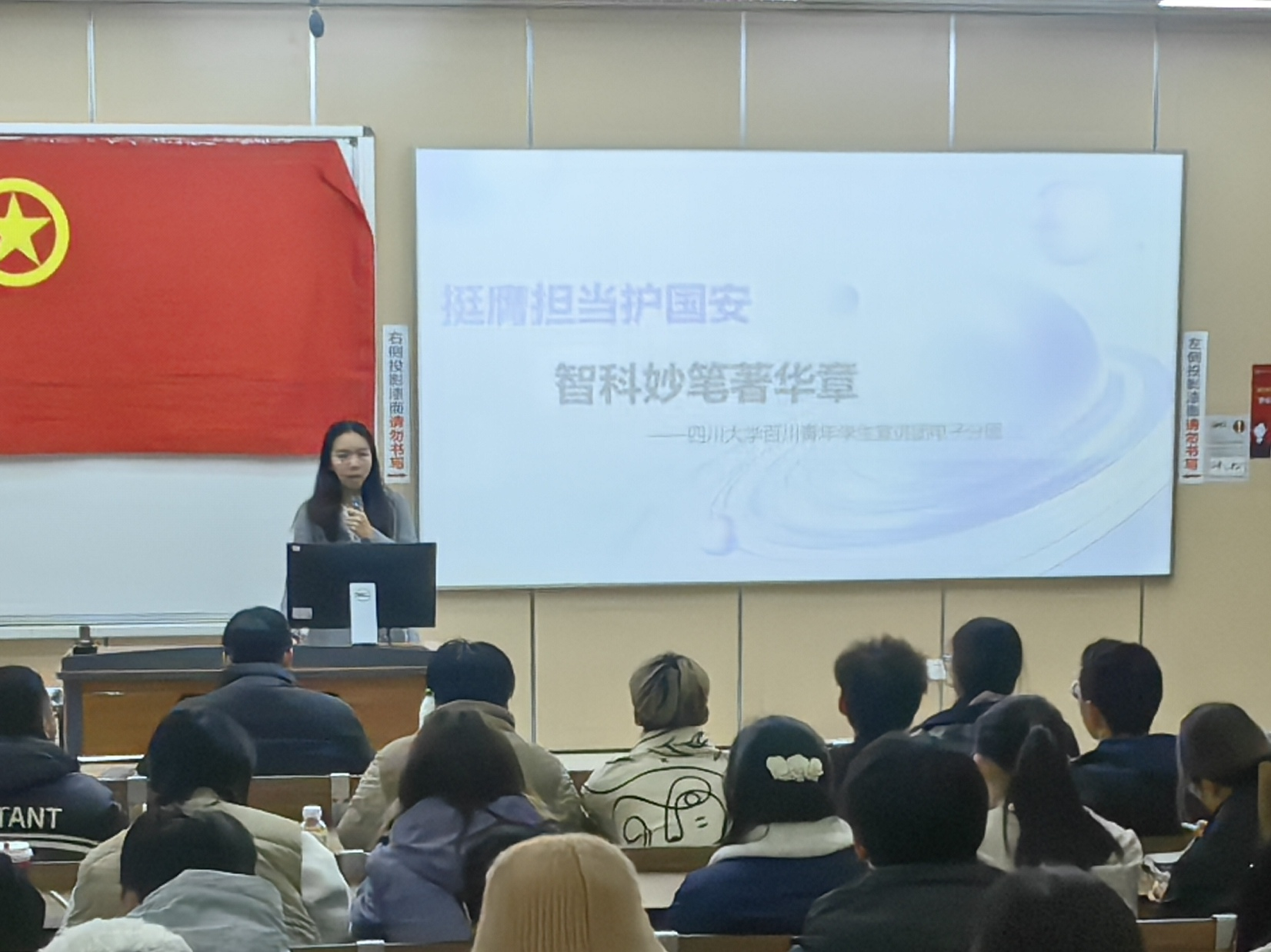在此次例会上,学生会执行主席易音彤深刻阐述了国家保密工作的重要性,细致解读了国家保密法的核心要义,并紧密结合青年学生的身份特点,探讨了青年学子应如何在日常学习生活中践行保密责任。随后,她围绕科技安全、国土安全、文化安全等内容详细介绍了a漫