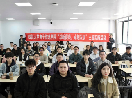 于江安校区综合教学楼B座B506举办“以新促质,卓越发展”主题实践活动总结大会,院团委副书记申鑫,校团委基层团组织建设中心副主任、研究生代表郭贝凡,兼职辅导员杨婉丁和参加实践活动学生代表参会。