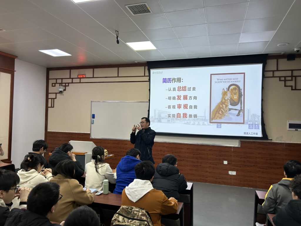 讲座伊始,何惠老师介绍了本次活动的背景与目的。对于即将步入毕业年级的二年级研究生来说,暑期前是诸多用人单位进校招聘的重要节点,而一份准备充分、内容专业的简历正是迈向理想职业的关键“敲门砖”。为帮助同学们从容应对简历投递环节,学院特邀具有丰富简历指导经验的向刚老师,为大家提供专业辅导。