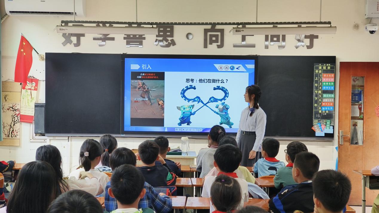 图为宣讲员谭晶晶结合电影《哪吒2》讲解国家安全