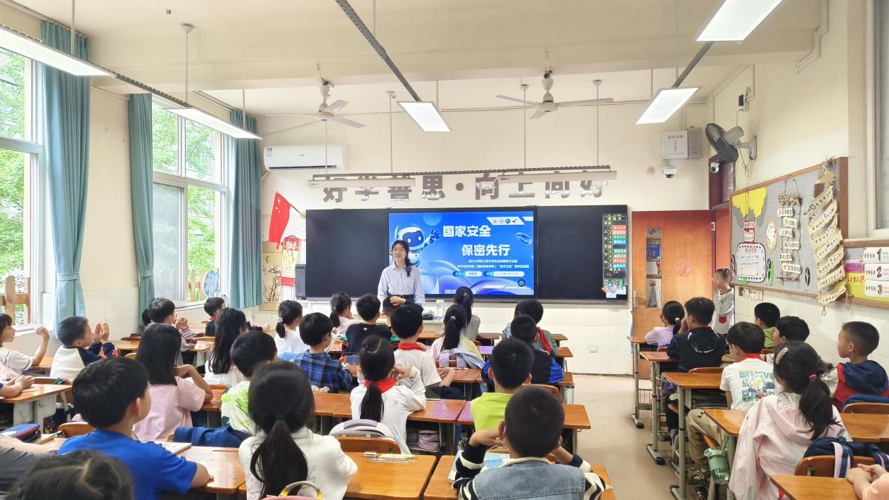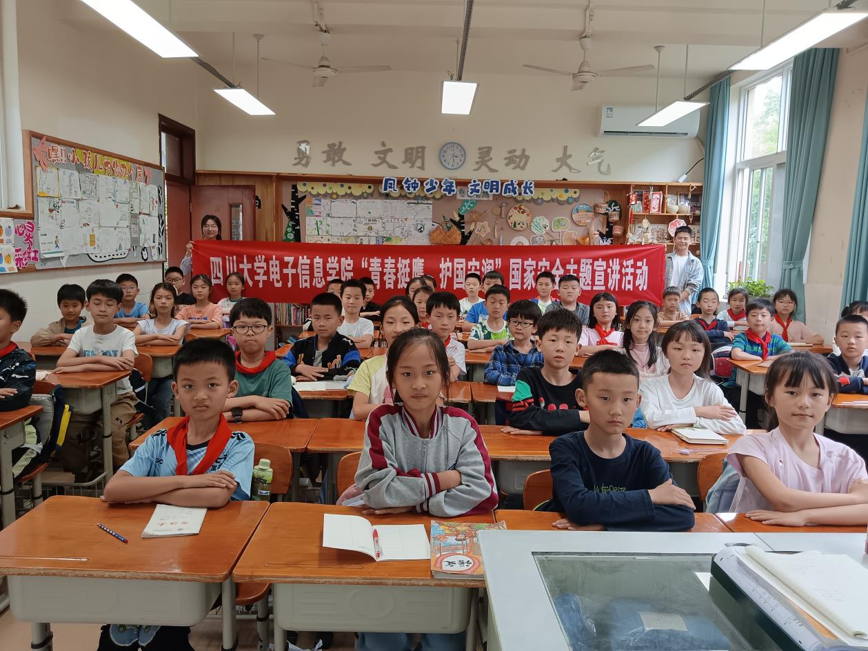 (国家保密学院)“电子之鹰”青年宣讲团走进川大附小,开展了一场主题为“国家安全,保密先行”的宣讲活动。宣讲团团长莫斌斌、成员谭晶晶参加宣讲活动。