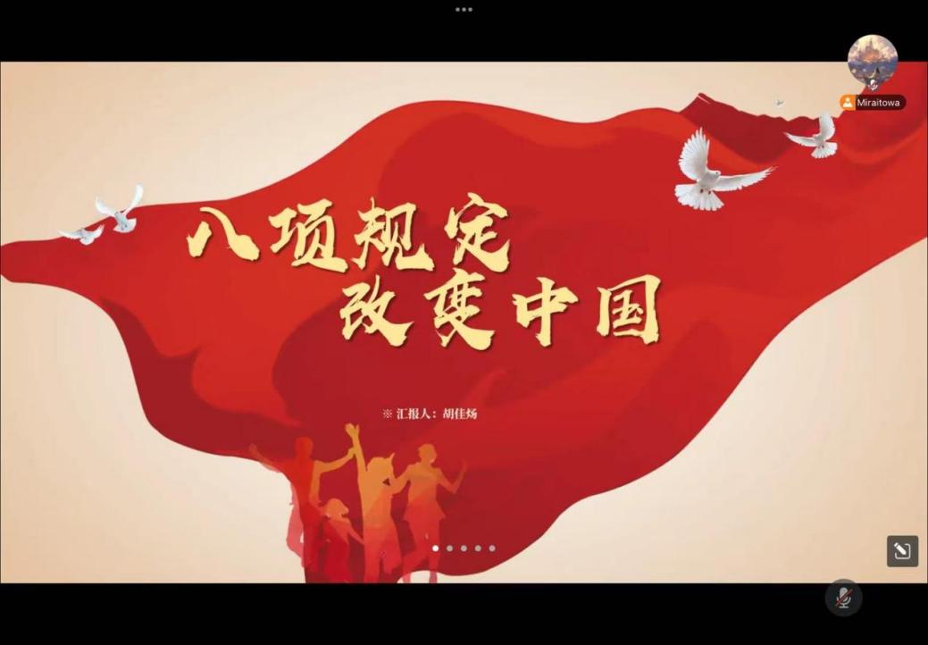 江安本科党支部于2025年6月2日晚上八点在腾讯会议线上举行八项规定学习分享和“红途轮忆,青讲党史”主题活动暨读书分享会。支部书记申鑫,支部党员、发展对象、部分入党积极分子和团组织推优成员参会。