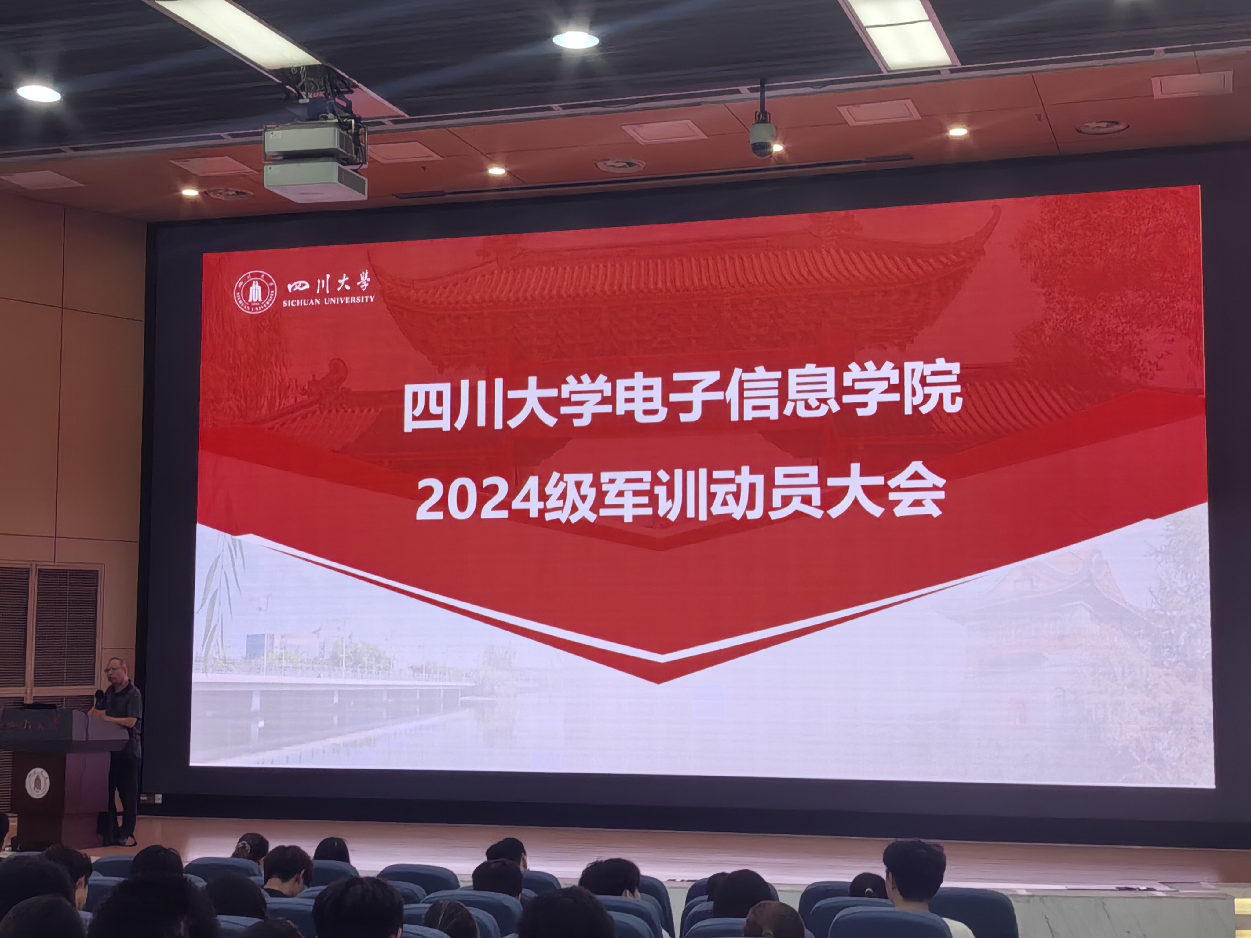 在江安一教A座水上报告厅召开了2024级学生军训动员大会。会议由2024级辅导员陈晓娟主持,学院党委副书记廖勇明出席并作动员讲话,2024 级全体参训学生参加会议。