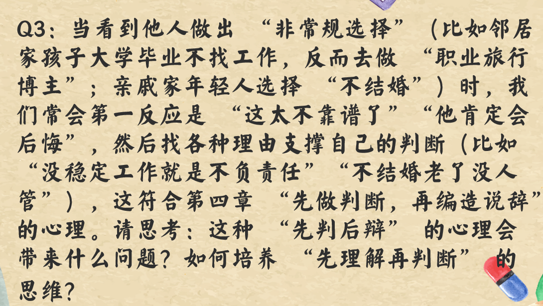(图三:领读人带领同学们思考如何在现实中跳出偏差缓解冲突)