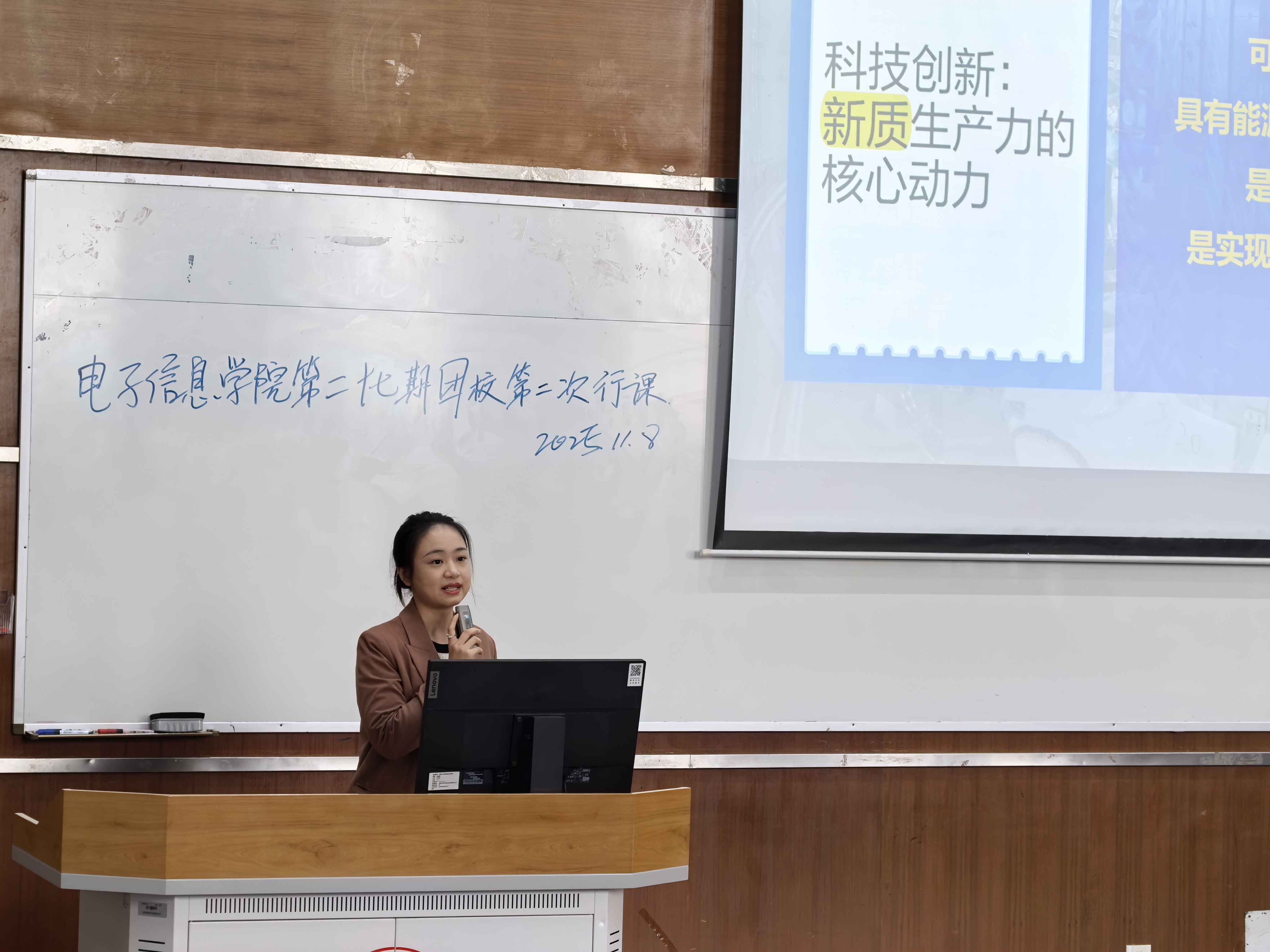 图为郑雪进行主题授课
