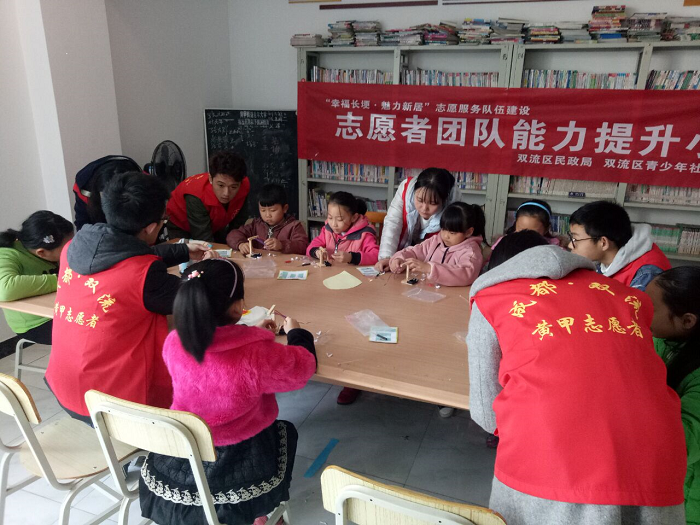 “腾飞”青年志愿者服务队在长埂新居社区服务中心二楼开展了关爱青少年之电子小手工活动。