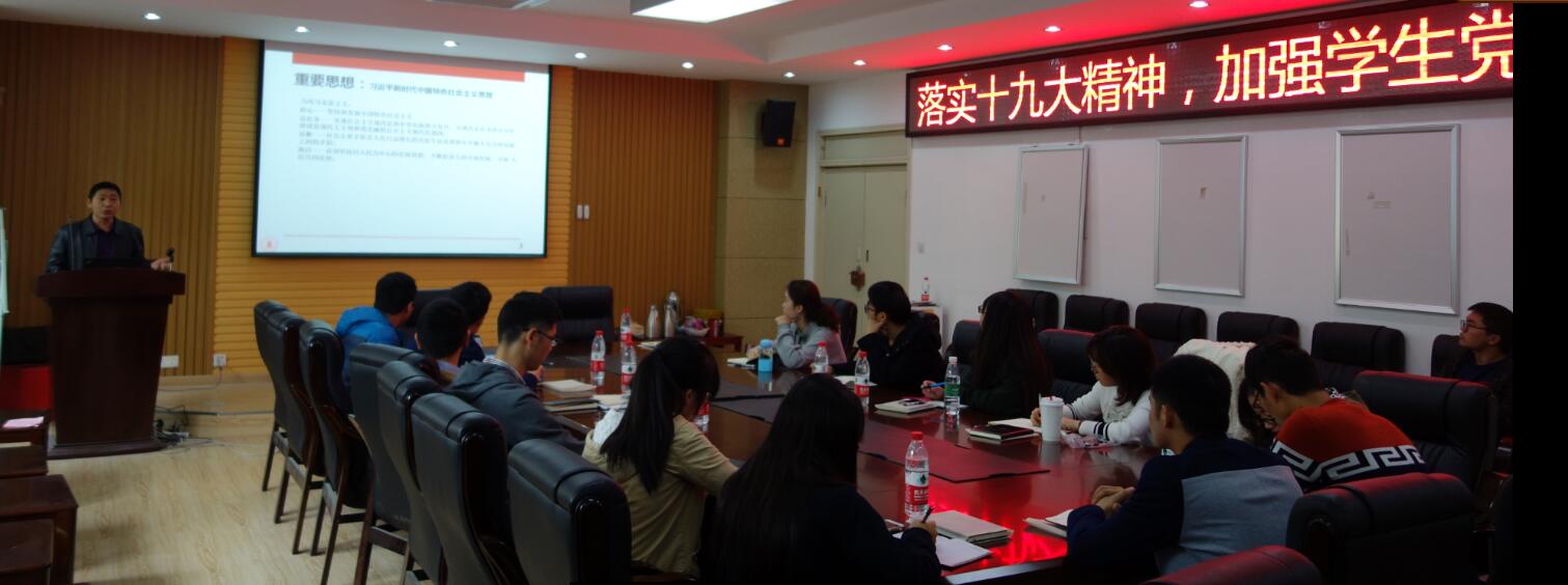 在望江校区基础教学楼A座303教室举办了“落实十九大精神,加强学生党建工作”动员会,参与此次会议的有陈笃海副书记、徐灿国老师以及a漫