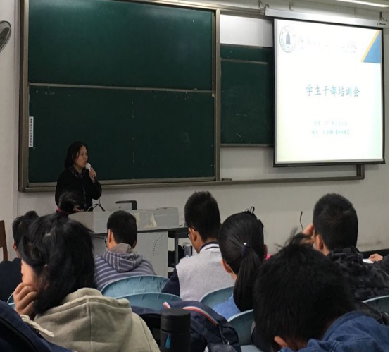 江安校区综合楼C座404教室举办了学生干部培训会,参与此次干训会的有电子江安校区三位辅导员辅导员老师们及一、二年级学生干部。