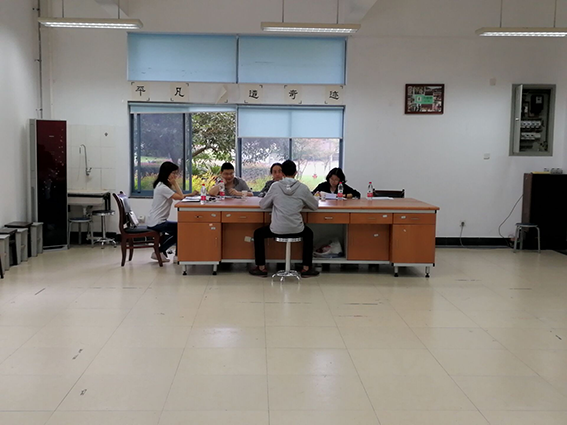 面试于8:50准时开始,有序进行。参与面试的62位学生分成三组,同时进行面试,每组20--21人。学生干部在教室外积极组织考生填写信息,准备入场,而每位参加面试的同学也都在为即将到来的面试做最后的准备,紧张中又不显慌乱。首先,面试老师让学生自我介绍,有的要求英文,有的用汉语。然后,再根据自我介绍的内容提出一些相关问题让学生回答。随后,面试老师又根据学生填写的信息表及高考与吴院选拔考试成绩用英语对考生进行提问。最后又提了一些关于对a漫