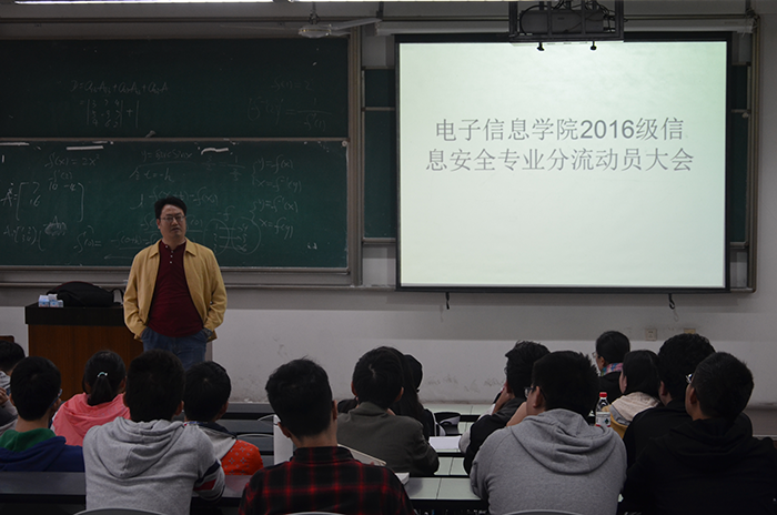 首先,胡勇教授提到,信息安全专业有信息安全,保密技术,卓越工程师这三个方向,保密技术即是在学习信息安全的基础上增加学习保密技术,卓越班则更加偏重于对学生操作实践能力的培养。凡是选此方向的同学将有6到8个月的实习期,比起不是卓越班的同学的半个月实习期会长一些。之后胡勇教授就各方向的学习课程,培养方向和就业趋势等方面进行了详细的说明和介绍,他鼓励大家积极培养对本专业的兴趣,并且注重平时积累,不要轻易放弃。随后,胡勇教授针对同学们提出的各种和专业相关的问题,一一作出详细的解答。陈晓娟老师对胡勇教授的一些发言做了简要的总结,同时她也告诫同学们要充分认识到“只要认真学习自己想学的课程,无论什么专业都是很优秀的”