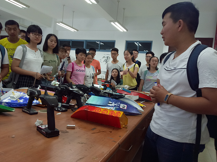 2017级的同学们分批次有序地进入了科技园。首先,他们在第二基础实验楼A111室欣赏宣传部的作品展览。宣传部从立体海报、PS海报、手绘海报等几个方面对宣传部进行了精彩的展示,并鼓励同学们亲自动手彩绘。现场气氛融洽,同学们都兴致勃勃地拿起画笔、喷漆,切身体会着宣传部工作的乐趣。随后在技术部学长学姐的带领下,同学们进入A116室参观技术部的成果展示。技术部学长学姐们依次介绍了飞光立方、摇摇棒、自制的电子琴,赢得同学们的阵阵惊呼。之后在学长学姐们的细心指导下,同学们纷纷拿起电烙铁,亲自动手焊电阻。参观完技术部的成果展示,同学们有序进入会议室A117室。行政部人员首先对同学们的到来表示由衷的欢迎,随后行政部人员根据自己的经验谈了谈加入科技园的益处,他们从学习技术、增强能力和结交朋友三个方面阐述电子科技园的优势,条理清晰,有理有据,使人信服。行政部人员也罗列出与a漫