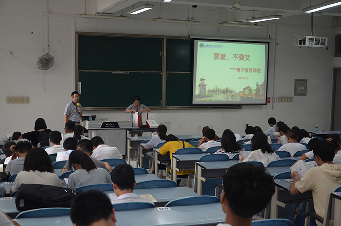 2017级新生开展了“要爱,不要艾”防艾知识宣传会,由2017级辅导员孟滋常老师主持召开。
