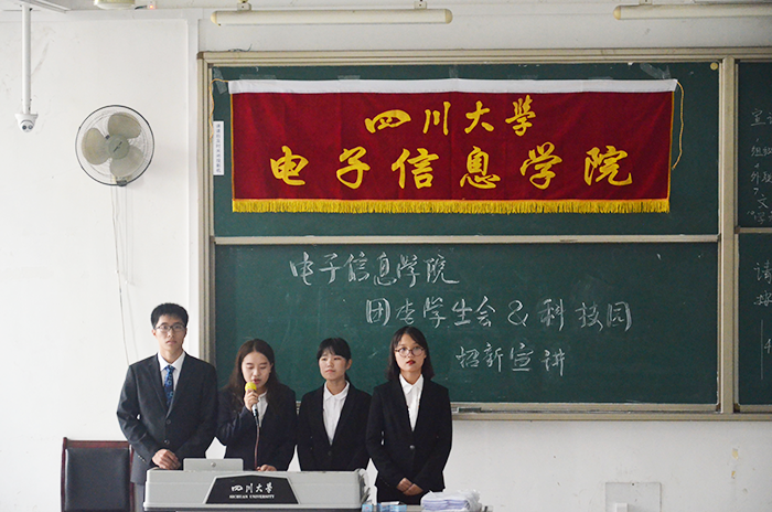 团委学生会和电子科技园的兴趣。最后,办公室的各位部长们将所用的物资进行了整理和收集,此次招新宣讲会顺利结束。