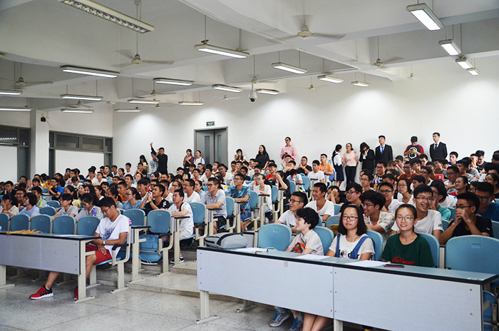 2016级学生执行团委副书记盛舒琦同学,学生会执行主席汤婧鑫同学,学生会执行副主席吴翘楚同学和学生会执行副主席、“腾飞”青年志愿者服务队队长王绍岳同学向2017级新生表示了热烈的欢迎。接着,他们就a漫