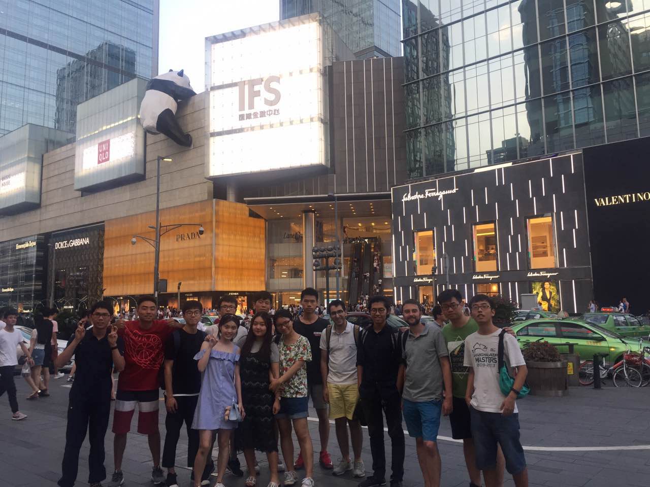 聚餐结束后,小组一行人来到春熙路,小组成员争相为交流营的同学介绍春熙路的情况,带着大家在春熙路各大商场穿梭,同时为了帮助外国同学更好的了解中国文化,同学们也去了同仁堂中药店介绍中草药给外国友人,同时也去到了太古里为外国朋友以及中科大同学展示了成都古风犹存又不失现代气息的城市风味。
