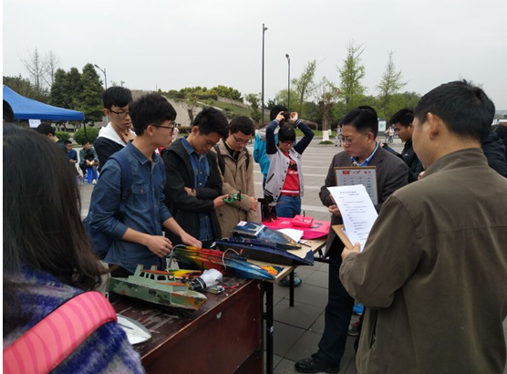 分团委书记李运国老师,江安校区社团指导陈林老师出席了这一次的比赛。在热烈的掌声中,由各位教授组成的评审小组开始对船模作品的控制模块、动力模块及整体结构设计等方面进行逐一评分,细致的问答不仅考验了同学们的知识水平,也锻炼了同学们反应及表达能力。答辩环节评比结束后,参赛选手们有序地前往景观水道进行最后的船只调试以及赛道试水工作。