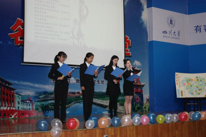 团委学生会组织部主办的2016年11月“延续蜀学渊源,谱写校庆华章之百廿校庆忆往昔,蜀我第一站到底”主题团日在江安校区第一教学楼水上报告厅成功举办。a漫