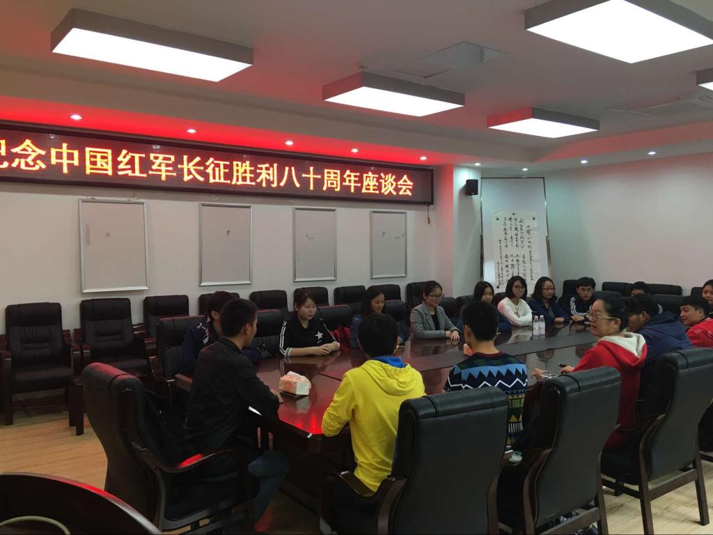 2014级本科生在望江校区基础教学楼A110会议室召开纪念长征胜利80周年座谈会,来自2014级本科的学生代表,学生干部代表以及所有党员同学与辅导员吴秀玲老师共聚一堂,缅怀长征历史,传颂长征精神。