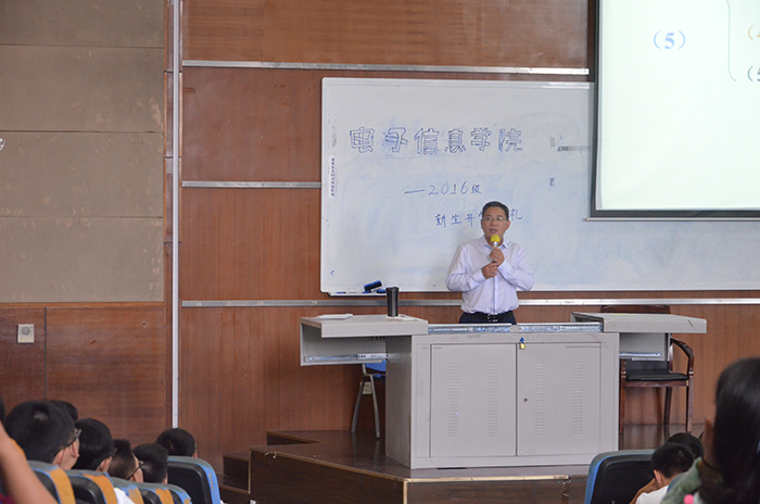 2016级新生开学典礼暨入学教育在江安校区综合楼C座407教室如期举行。参加本次活动的有学院党委蒋斌书记、学院分管本科生教学副院长周新志教授、学院分管研究生教学副院长冯国英教授、学院党委陈笃海副书记、2016级辅导员陈晓娟老师、2016级辅导员陈林老师以及2016级的全体新生。