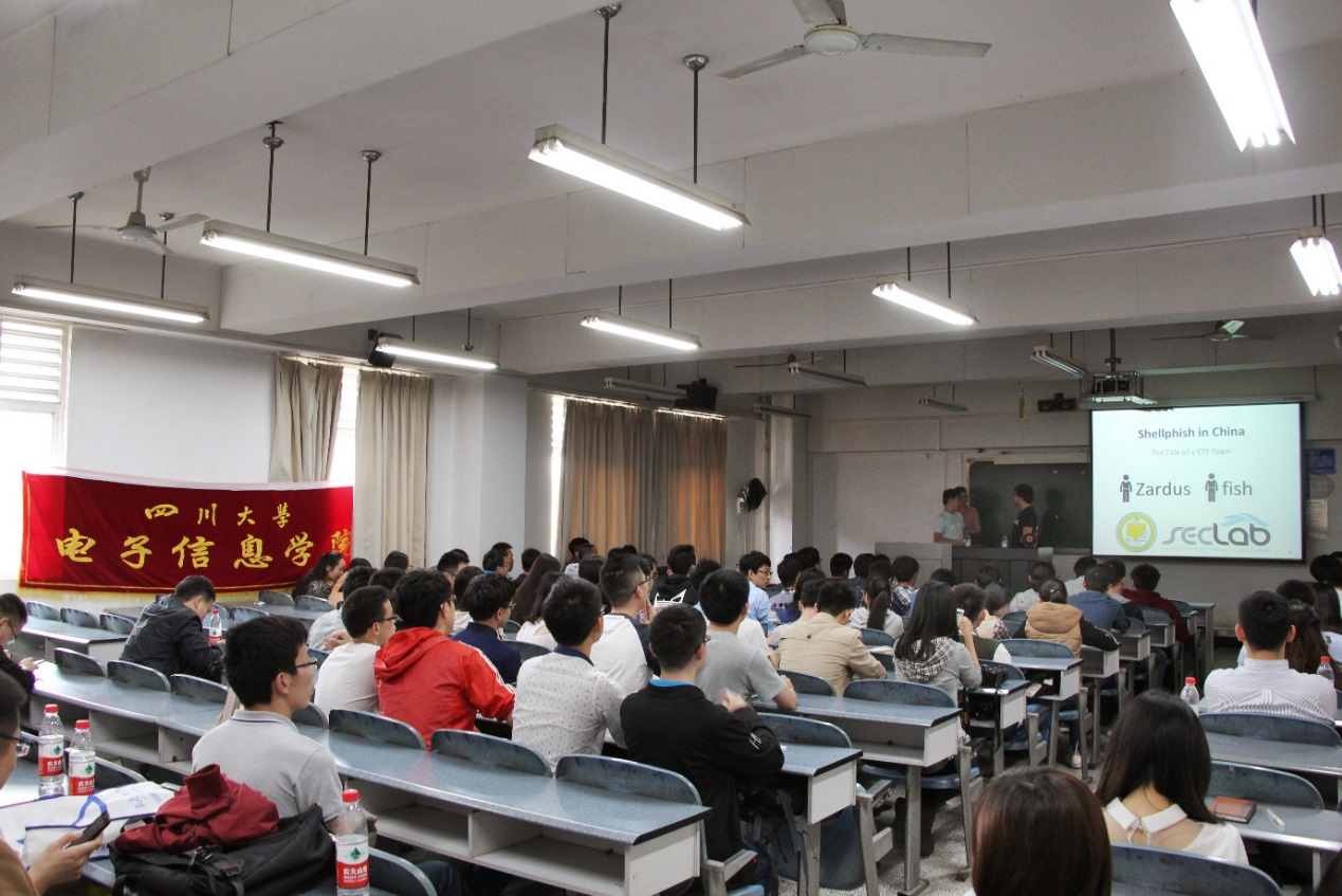 活动中第一个演讲议题是由Yan带来的“CTF比赛和CTF团队建设”,Yan以Shellphish团队为例,详细介绍了整个团队从无到有的历程,通过团队的比赛视频资料向同学们展示了团队参加CTF比赛的现场情况以及团队的比赛战绩,让大家对于CTF,对于Shellphish有了更加直观的感受。