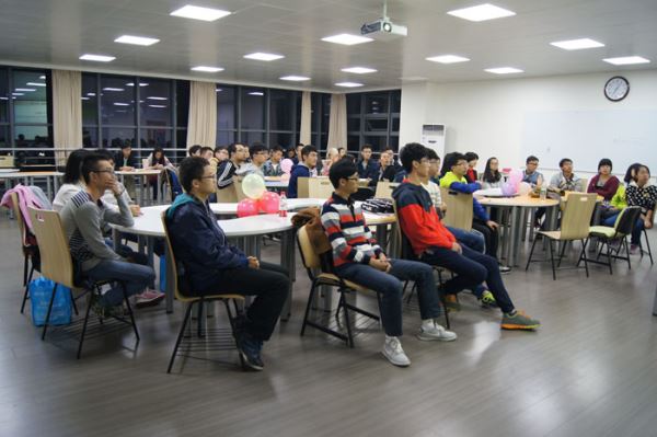 晚上7点,交流会正式开始,教室里座无虚席。首先主持人简单介绍了各位学姐学长,然后夏茂才学长发言,他介绍了a漫