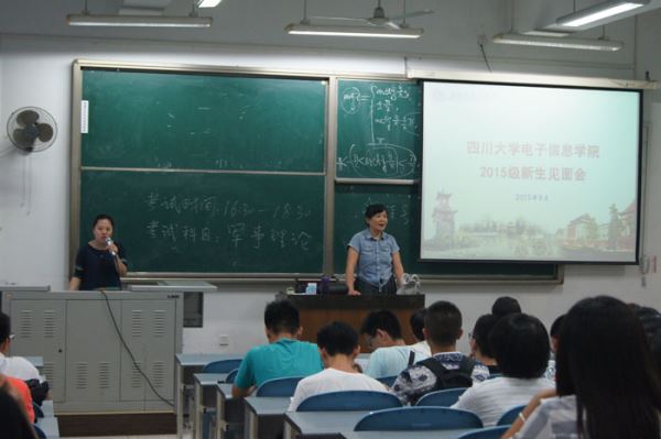 2015级新生大会暨“发现川大”系列讲座在江安校区综合楼C座103、105教室顺利开展。参加本次活动的有2015级辅导员陈林老师与徐灿国老师,教导员许洪老师以及a漫