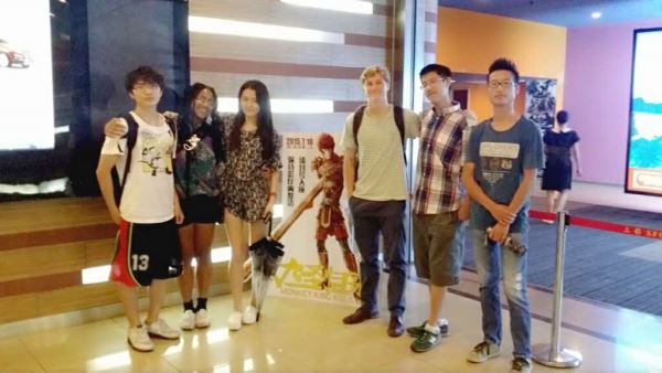 为了加深美国同学的印象,使讨论不仅仅停留在理论阶段。在讨论结束后,第三小组的同学和美国的交流生一起。来到电影院,一起观看了这部名为《大圣归来》的优秀国产动漫,在观看过程中第三小组的同学尽自己最大的努力,担当翻译,并不时小声与美国同学交流。