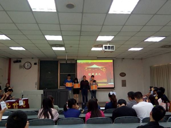 本次竞赛旨在以趣味十足的形式帮助同学们认识到社会主义核心价值观的意义和重要性,弘扬爱国主义精神,并让同学们对当代中国的形势有进一步的了解。下午两点半,主持人宣布本次活动正式开始。在陈书记简短致词后比赛拉开帷幕。首先是必答题环节,参加竞赛的五支队伍初试锋芒,分别回答了各自的15道题目。接下来进入激烈的抢答环节,由按下抢答键的队伍进行答题,选手们的激烈争夺和精彩表现博得了现场观众的一阵阵掌声,比赛进入了白热化阶段。在随后的在限时答题环节中,各参赛队都在紧张的时间里发挥了自己最好的水平。接下来是观众互动环节,现场的观众积极热情地参与答题,将现场气氛推向高潮。最后,陈书记为获奖的队伍颁发了奖状及奖品,并与获奖同学合影留念,本次竞赛在轻松愉悦的氛围中圆满结束。