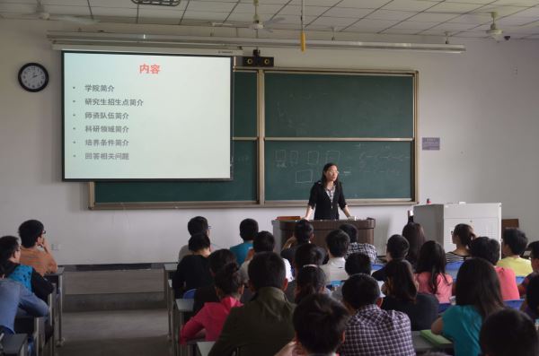 的招生规模、研究生学习的特点、研究生奖学金等方面的问题;五、由往年数据统计说明本科和研究生毕业的就业情况等。在冯院长宣讲结束后,同学们就自己感兴趣的问题踊跃地向冯院长进行了提问,冯院长一一给以详细解答,认真说明了我们学院较其它学校的优势和不足并鼓励所有同学都进一步深造。短短的两节课结束时,同学们都意犹未尽,都想继续和冯院长进行进一步交流,在宣讲结束后同学们又单独就自己感兴趣的问题向冯院长提问。