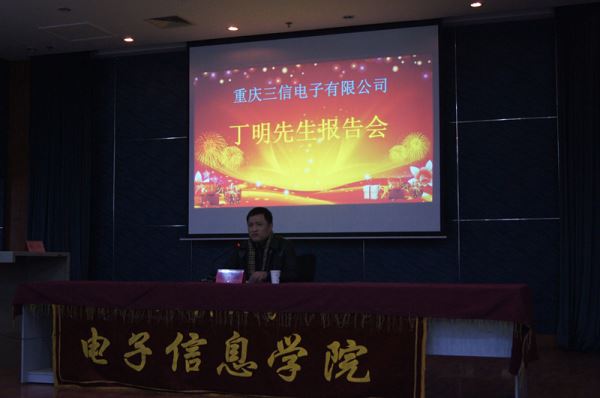 丁明先生的报告不仅让同学们了解了重庆三信电子有限公司,并且作为公司创始人,丁明先生对母校的回报、对教育的重视更是感染了到场的每一位教师与同学。