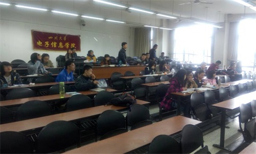 首先,杨超学长在简单讲述了参加电子竞赛在电子知识学习过程中的重要性后,为同学们介绍了适合电子类专业同学参加的竞赛类型,如,全国大学生电子设计大赛、四川省电子设计大赛、飞思卡尔大赛、船模大赛及其他a漫