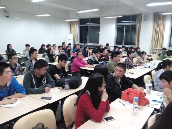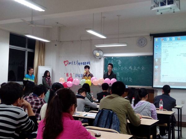 各班代表及小分队队长上台向大家展示了其队名、口号以及精神风采。雷鸣般的掌声之后,由执行部六名干事带来的节目更是让大家笑不绝口。接下来,江海燕队长以及陈祥部长分别上台发表讲话,与大家分享了志愿者的心得体会以及ps制图技巧。随后,“腾飞”青志的各位部长副部长分别上台,对干事们进行了针对性地培训。最后,部长与副部长为干事分发志愿者工作牌。每当一张工作牌被戴领之时,每个人的脸上都洋溢着幸福的笑容。22点,会议圆满结束。