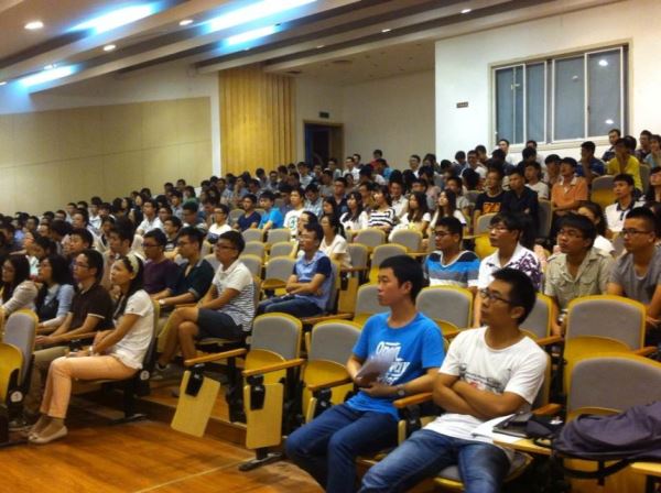 首先蒋斌书记上台致欢迎辞,希望同学们能尽快适应研究生角色,同时也希望同学们在研究生阶段首先要学会做人,做一个学术诚信的人,做一个心理健康的人。他的讲话让同学们对研究生学习及生活有了更深入的认识,也更有信心迎接未来的研究生生活。接着学院教师代表、博士生导师张彬教授讲话。张老师向同学们分析了研究生与本科生的不同,督促同学们要制定远大的志向并且对研究工作要坚持不懈地努力。通过她的介绍,同学们对未来的方向又清晰了许多。最后,2013级博士研究生代表王树桐同学向在场的新生分享了自己的求学经历,鼓励他们要多动手,并强调要多去锻炼自我的社交能力。2014级硕士新生代表冯丹同学则表达了对即将开始的大学生活的期待,并提出学习上的问题及建议与同学们共勉。
