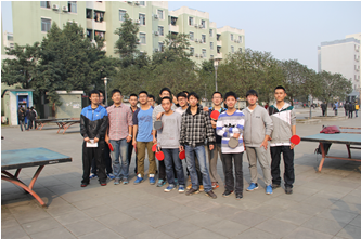 2013级在江安校区西园三八广场举行了男生寝室乒乓球比赛。乒乓球作为国球,比赛相当热闹。有的同学是久经沙场的勇将,打球风格灵活多变,令人防不胜防;有的同学是初出茅庐的新手,只能全神贯注,认真对付,不敢有一丝一毫的马虎轻敌。小小球儿如闪电般迅速,选手们挥拍、短攻、抽杀,观众们应接不暇。比赛结束了,观众提着心终于落回去了,随即爆发出热烈的掌声。