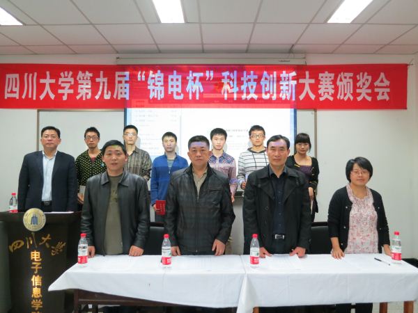 2013年3月22日下午两点半,第九届“锦电杯”科技创新大赛颁奖典礼在望江校区基础教学楼A303顺利举行。成都中电锦江信息产业有限公司副总经理杨鸣先生、人劳企管处处长程晓明女士以及a漫
