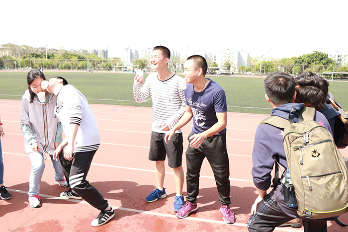 活动期间,参与人员共分成9个小组。首先举行的是全体游戏“不是你的ball”。该游戏考验队伍协调能力,同学们兴致高涨,激烈角逐,抢球守球,攻守结合,活力四射。活动开始,便充分调动了大家的积极性。接下来,各小组需要挑战五个游戏,分别是扑克牌翻身做主人、呼啦圈一条龙服务、盲人摸红领巾、你画我猜不出接力、泼你一脸的、调皮的杆子、前方的战士等有趣游戏。这些游戏考验体力,但更多的是考验策略和团队配合度。于是,队员们纷纷出谋划策,关键时刻总是有人挺身而出,掀起阵阵高潮,现场活动气氛十分热烈。