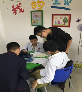 江安校区西南门集合,16时10分左右,志愿者们抵达了双流县石羊场新街社区综合服务站。在与老师和同学们打过招呼后,志愿者们便开始分工为同学们进行课后作业的辅导与答疑。 在此次活动中,有的志愿者为同学们检查作业,答疑解惑;有的志愿者为同学们听写词汇,解决生词;有的志愿者陪伴同学们朗读文章,纠正发音。检查作业时,志愿者耐心指出同学们的错误,并细心地为同学们分析错误原因,引导同学们独立自主改正错误,巩固知识。听写时,志愿者在同学们没有写出词语时,会为他们解释词意,并用形象的语言让他们记住词语。整个过程中,不时有同学们提出疑问,志愿者们则认真细致地思考,耐心地给同学们讲解题目,为他们打开思路。随着时间的流逝,越来越多的同学完成了当天的课业,快乐的时间总是过得很快,又到了志愿者和同学们说再见的时刻,18时左右,志愿者们与双流县石羊场新街社区综合服务站的老师和同学们挥手作别,踏上归途。